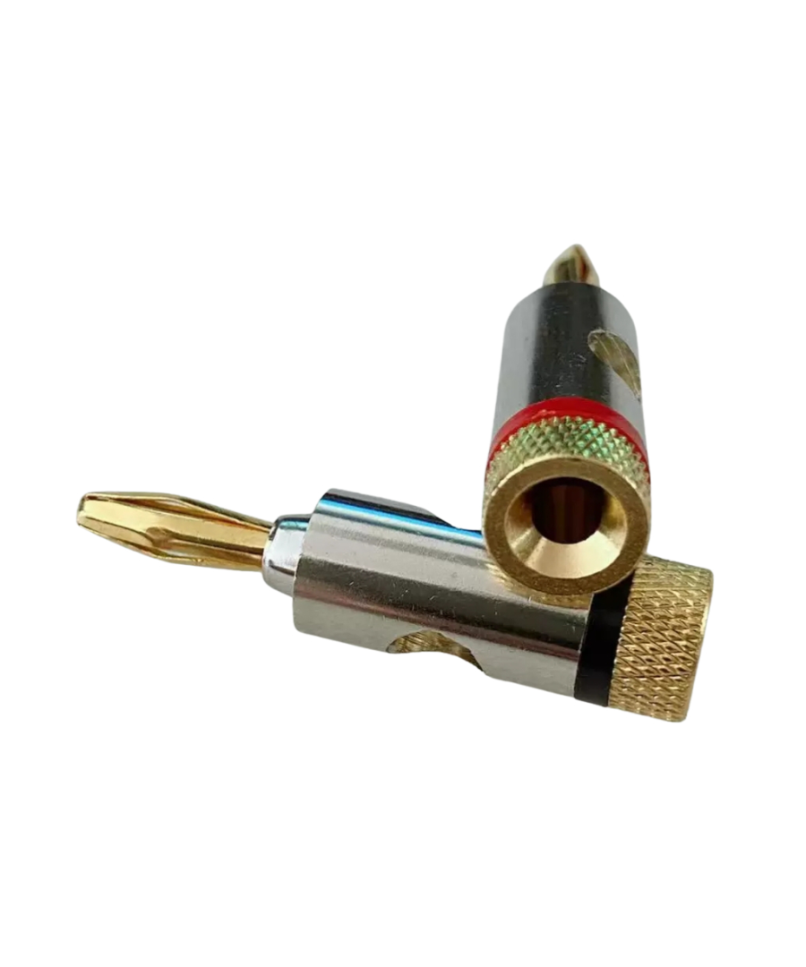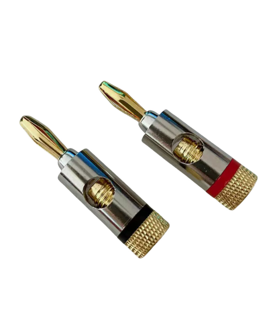 La confezione include 2 connettori a banana con foro standard da 4,5mm. Realizzati interamente in metallo permettono di collegare anche un filo con serraggio a vite. La placatura dorata garantisce la massima connettività per una resa perfetta.