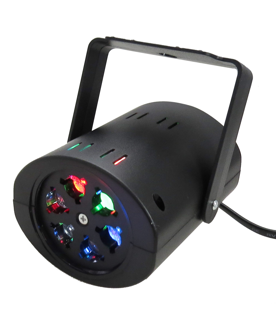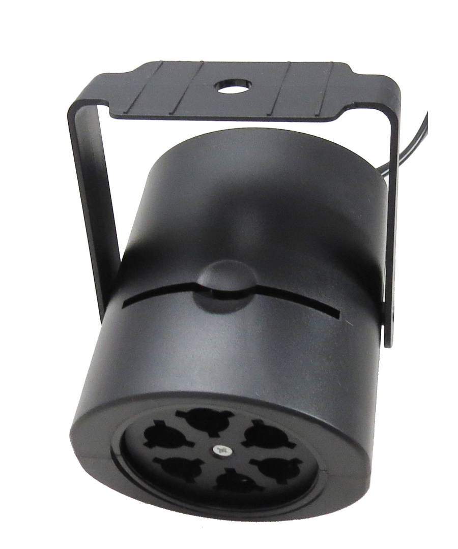 La staffa permette di posizionarlo sia su tralicci sia su normali superfici. L'assorbimento elettrico è irrisorio e i led RGB illuminano le sagome proiettate in svariati colori.