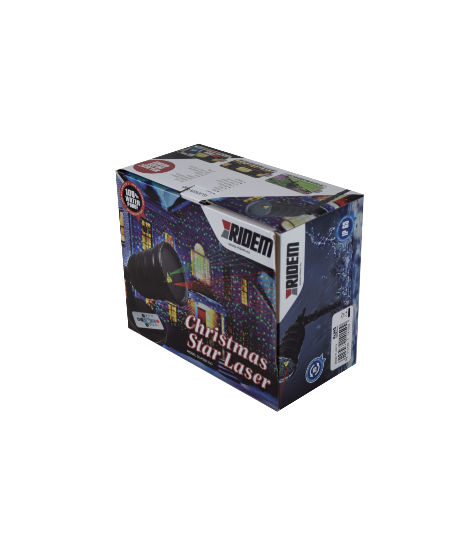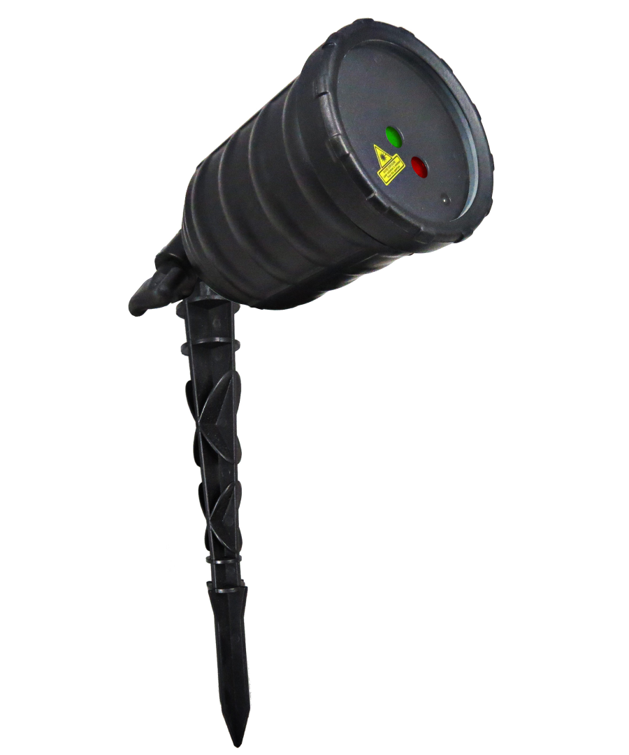 Effetto luce laser da esterno, impermeabile (IP65). E' munito di picchetto per essere piantato in giardino, nonché di una pratica basetta per appoggiarlo ovunque o appenderlo in verticale. Ideale per l'illuminazione di facciate di abitazioni, pareti e ampie superfici di qualunque tipo. All'accensione verranno generati centinaia di fasci laser proiettati ad ampio raggio, per creare un effetto unico e spettacolare. I diodi laser di colore verde e rosso sono di alta qualità e garantiscono una resa ottimale. Può essere impiegato per le tradizionali decorazioni natalizie, ma anche per animare feste all'aperto,